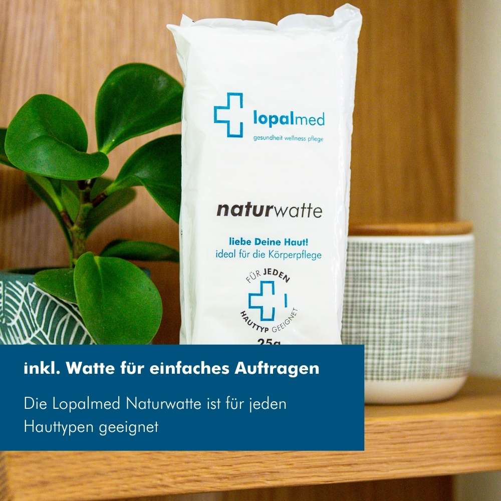 Die Watte wird benötigt, dass der Lopalmed Hornhaut- und Nagelhautentferner an den betroffenen Stellen aufgetragen werden kann.