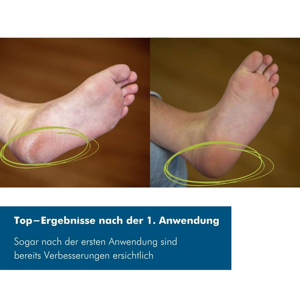 Der Vorteil: die gesunde Haut wird so nicht beansprucht oder gar verletzt (besonders für Diabetiker geeignet) und somit der unnatürlichen Hornhautneubildung entgegengewirkt.