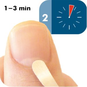 Beträufle die Watte mit der Lotion und achte dabei darauf, dass du genügend Lotion verwendest. Die Haut soll leicht durchschimmern. Lass die Lotion für ca. 20 Minuten einwirken.