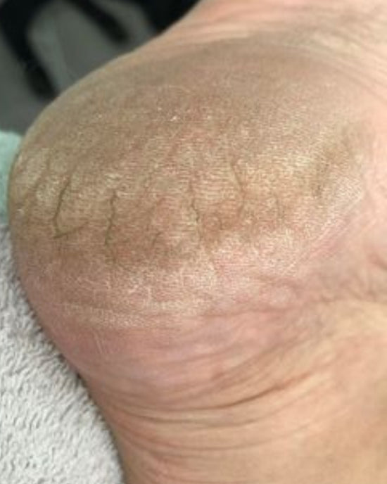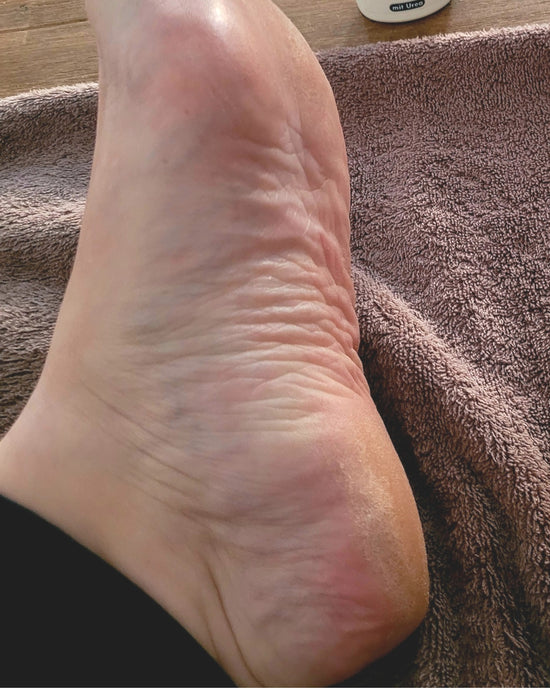 Unsere Formulierungen enthalten bewährte Inhaltsstoffe wie Urea, Panthenol und Glycerin, die bekannt dafür sind, die Haut zu hydratisieren, zu beruhigen und zu regenerieren. Diese Wirkstoffe helfen, die Haut zu glätten und Hornhautbildung vorzubeugen.