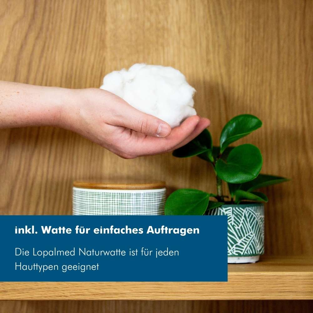 Die Watte wird benötigt, dass der Lopalmed Hornhaut- und Nagelhautentferner an den betroffenen Stellen aufgetragen werden kann.