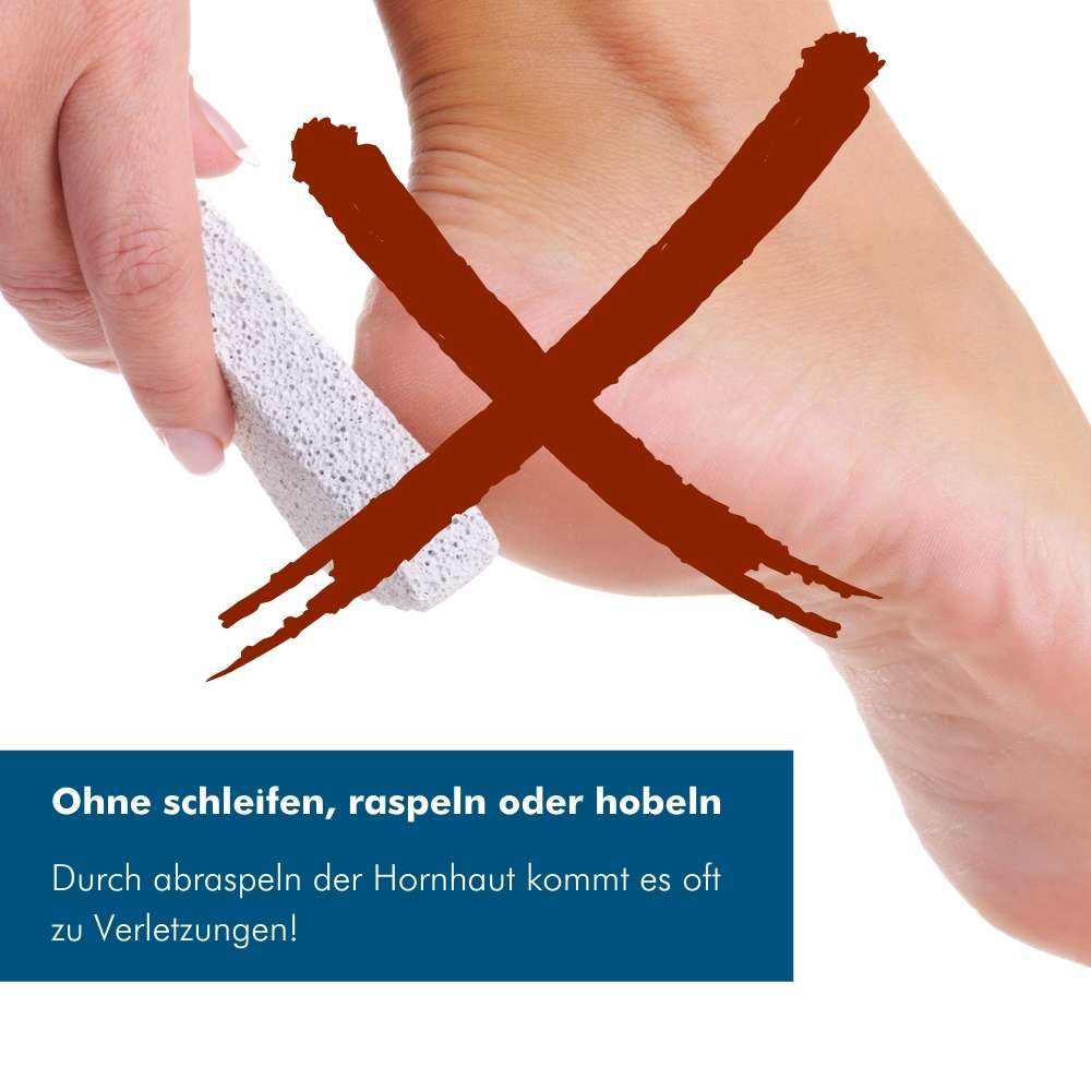 Der Vorteil: die gesunde Haut wird so nicht beansprucht oder gar verletzt (besonders für Diabetiker geeignet) und somit der unnatürlichen Hornhautneubildung entgegengewirkt.