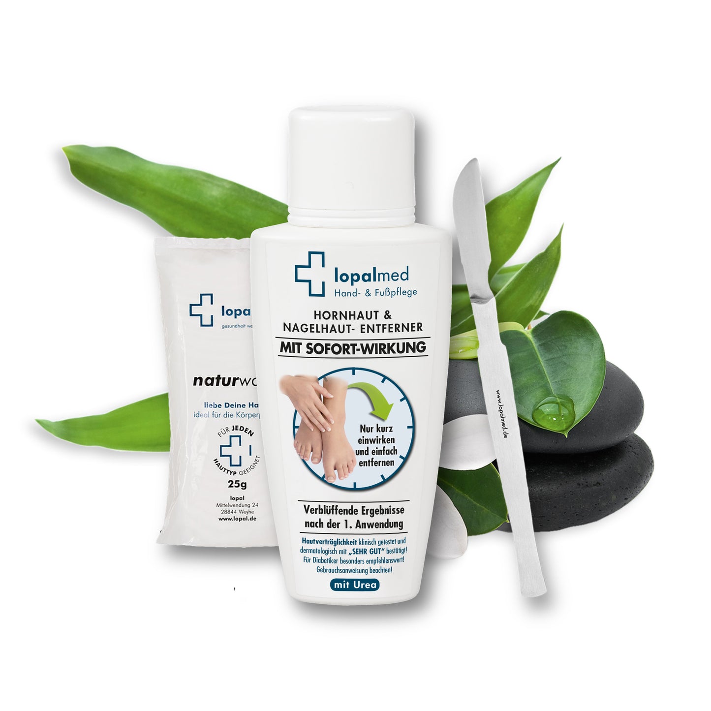 Mit der Lopalmed Hornhaut & Nagelhaut-Entfernungslotion haben Sie die Möglichkeit, Hornhaut und Nagelhaut ohne Bimsstein, Raspel, Hornhauthobel oder Nagelhautschere schonend und völlig verletzungsfrei zu entfernen.